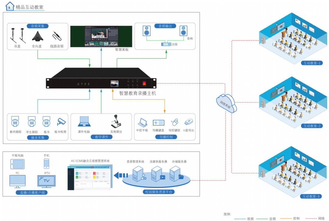 方案適用于精品錄播教室、常態化錄播教室、“雙師課堂”、“三個課堂”、微課教室、校園電臺等場景。