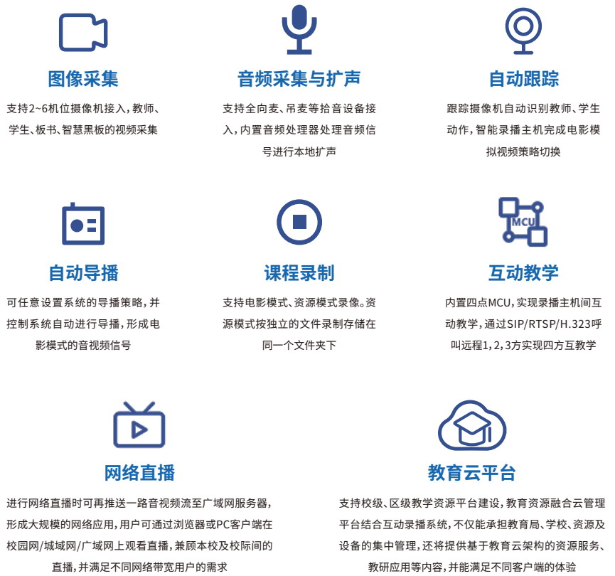 自動跟蹤、自動錄制、自動導播、自動上傳。