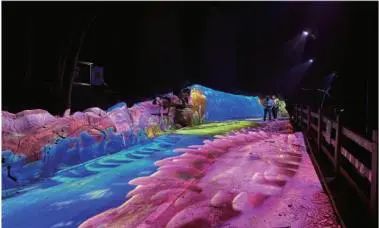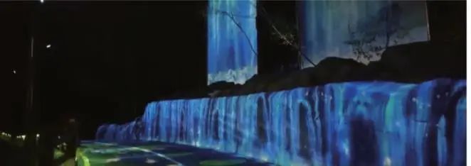 人造瀑布采用多臺激光投影機,山體加沙幕實現瀑布畫面,通過高清投影系統營造出真實而身臨其境的效果。游客仿佛把自己置身于畫境中,洗卻雜念,回歸虛無,感受到與自然融為一體之妙。