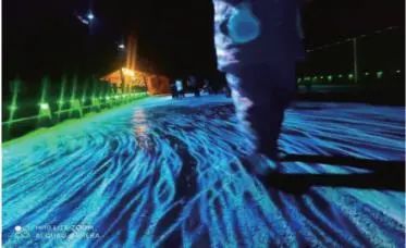 地面投影采用六臺激光投影機實現互動感受,旅客踏進感應區時可以用肢體與投影畫面中的內容進行互動。地面投影可以起到活躍現場氣氛的作用,增加了展示的科技含量,也提供了具有創意內容的展示效果,在增加鹿谷鳴景區人氣的同時,加深游客對景區的印象。